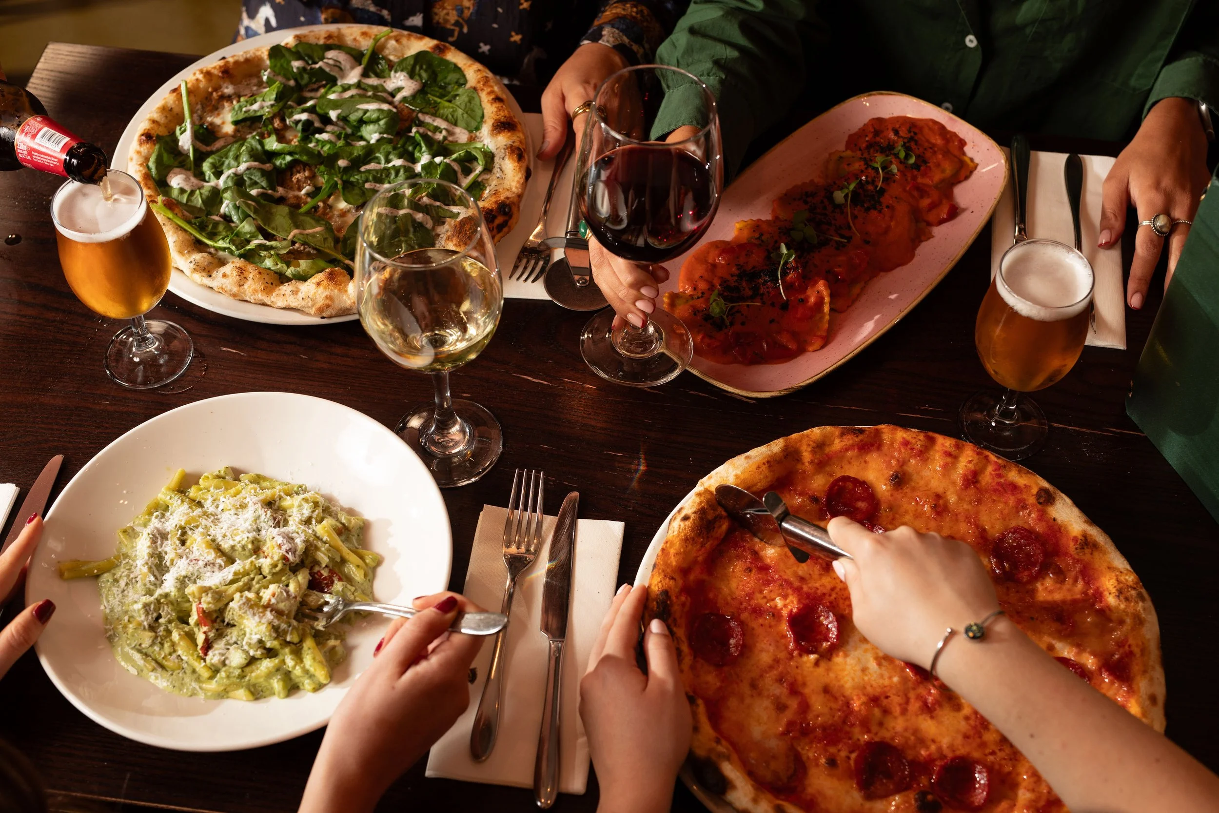 Step off Buchanan Street for an Italian welcome. Our pizzaiolo rolling and tossing dough. Mediterranean vegetables roasting in the pizza oven. On sunny days, our terrace is for prosecco, pizza and people watching.